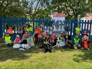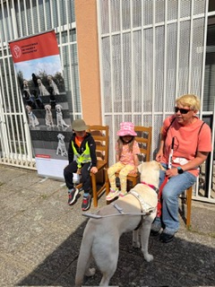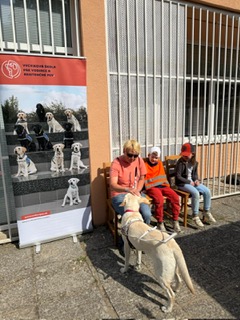 Nezostali sme však len pri rozprávaní. Deťom sa veľmi ochotne predviedli všetci naši psi. Ako sa hráme so šteniatkami a čo všetko už vedia, keď dovŕšia 6 mesiacov, nám ukázal psík Cyrus. Nezaváhal a do bodky splnil všetky povely a úlohy. Deti tak mali možnosť vidieť, že s prípravou na prácu vodiaceho psa začíname pomocou hier už v tomto skorom veku.
