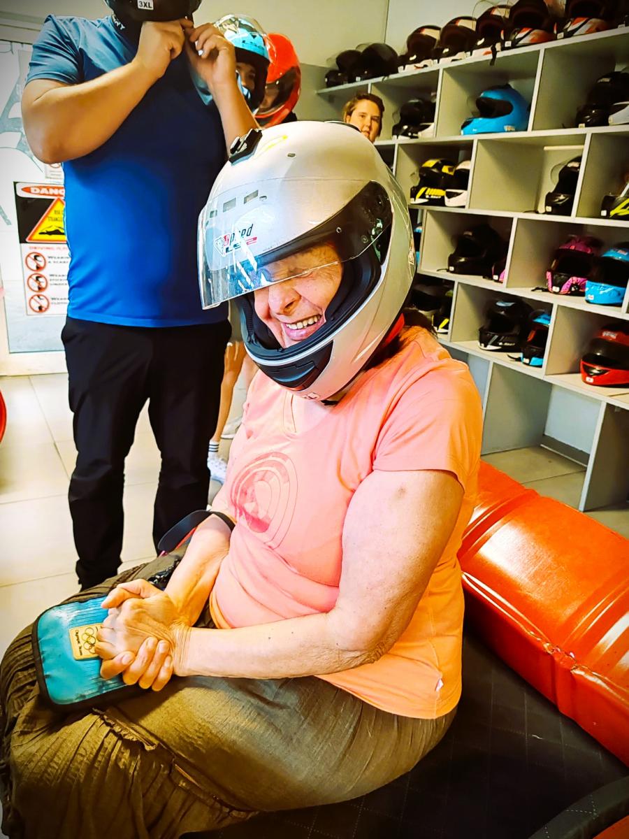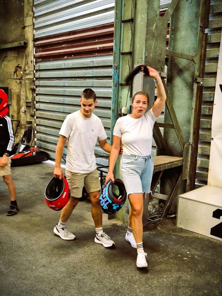 A aby toho nebolo málo, roztočili sme to aj na motokárach! Ak si niekto myslí, že nevidiaci sa adrenalínu vyhýbajú, veľmi sa mýli. Naši účastníci boli plnohodnotnými spolujazdcami, ktorí aktívne pomáhali svojim vidiacim sparingom – a trať pod kolesami im rozhodne nestačila. Spolupráca, komunikácia a dôvera fungovali na sto percent a výsledkom boli rýchle kolá, veľa smiechu a pocit, že limity sú na to, aby sa prekonávali.
